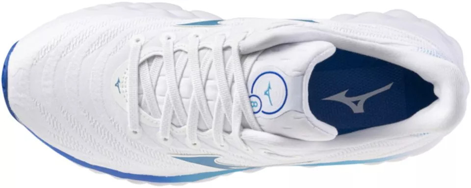 Felsőrésze Smooth Stretch Woven elnevezésű hálós kötött anyagból készült, amely rugalmas, megfelelő légáteresztésű. Sarokgallérja magas, hogy a lábat jól tartsa, a párnázottság egyedi kialakításának – a felső rész puhaságának – köszönhetően pedig az Achilles-inat is védi. Középtalpának habja, két különböző habból, az Enerzy NXT és az Enerzy Foam-ból áll, aminek köszönhetően könnyebb és kényelmesebb, dinamikusabb lett a Mizuno Wave Sky 8 futócipő az elődjénél. Nincs beleépítve ugyanakkor műanyaglemez, ezt a két habréteg hullámos érintkezése hivatott pótolni. A Wave Sky termékvonal eddig is ismert volt a kényelméről, de az új habbal még kényelmesebbé vált, és a cipő lendülete is sokat javult. Külsőtalpa egy X10 elnevezésű gumikeverékből áll, ami a keményebb oldalon van, így nagyon jó a kopásállósága. A külsőtalp nagy felületen fedi le a középtalpat, de szegmentált, így nem teszi merevvé a talpszerkezetet.