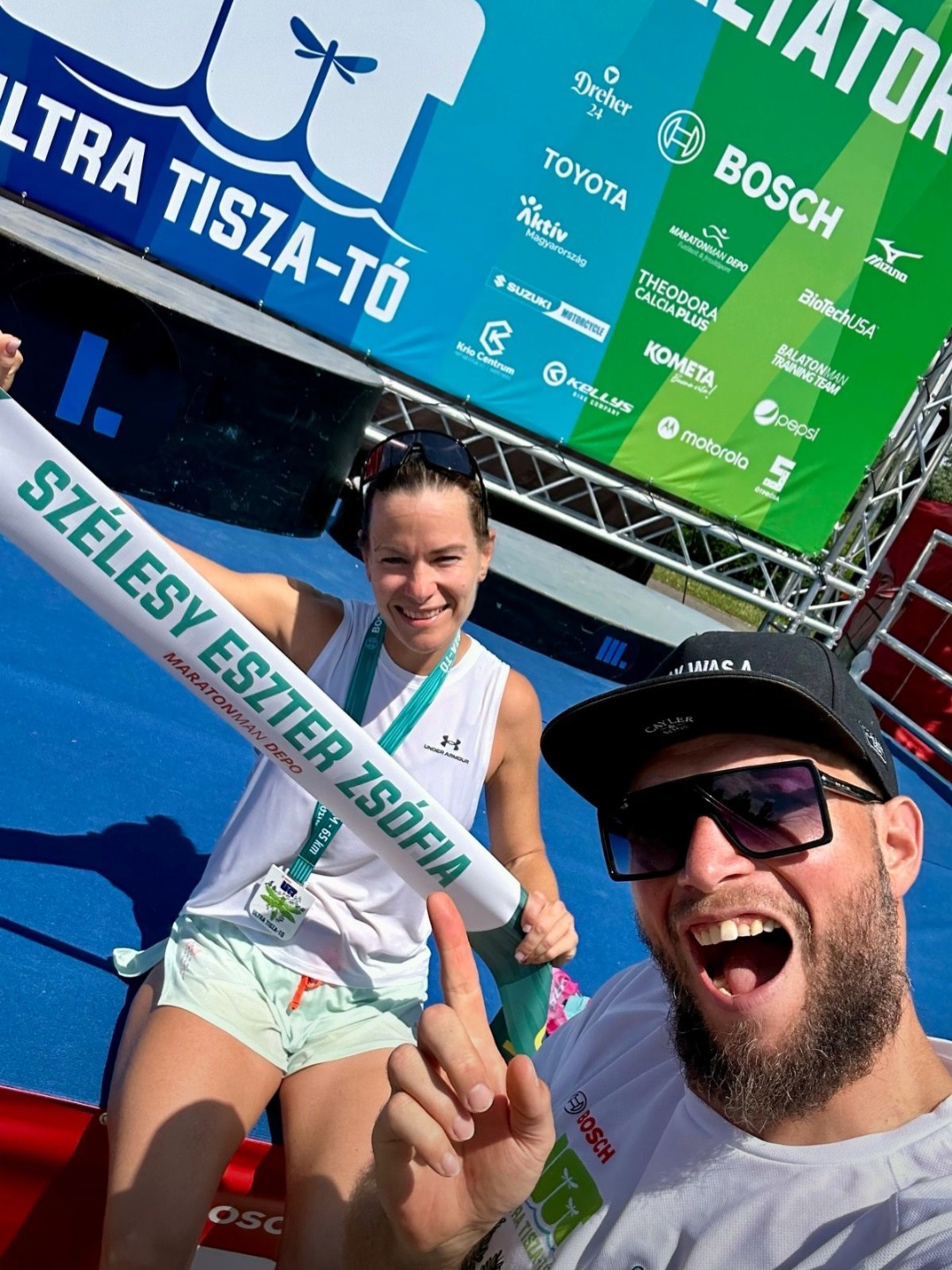 (Eszti és párja Koronics Norbi, aki szintén egy őrült triatlon versenyző. Ő az a szerencsés, akinek sosem fáj semmije, de legalábbis nem látszik rajta. Bárcsak Esztivel mi is így érezhetnénk néha😊)
